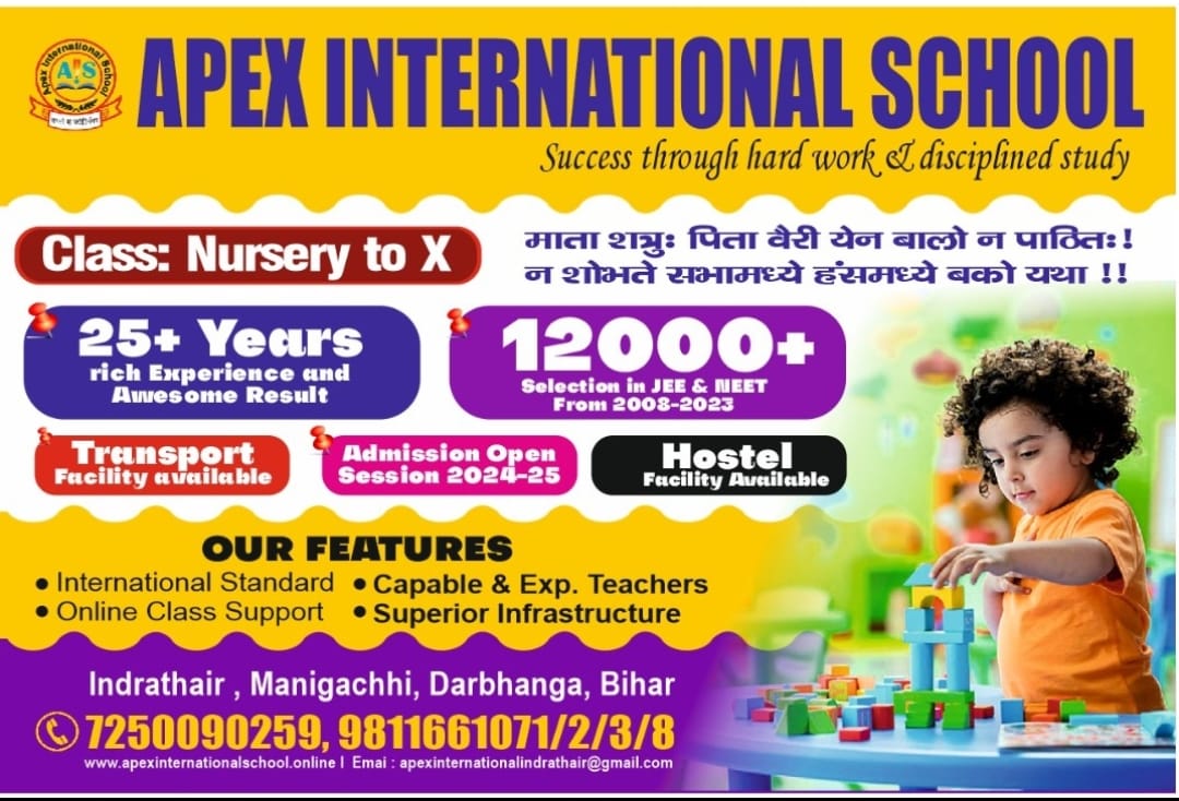 Apex Education, 2nd Floor , Muthoot building , Near Kotwali Thana, Naka No.- 5, Darbhanga , Bihar. Ph. :- 7070459499; 9811661070/71/72/73